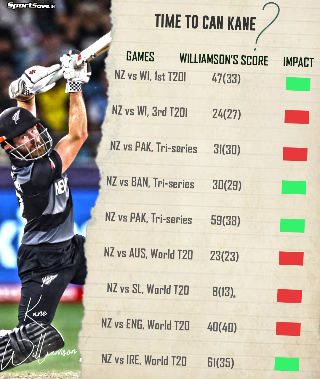 Reputation and resume can only compensate for ruts till a time before they are doomed to bring you to ruin. Kane Williamson is finding it harder and harder to justify his presence in the Kiwi T20I side and the time may have finally come to bring the relationship to an amicable close.