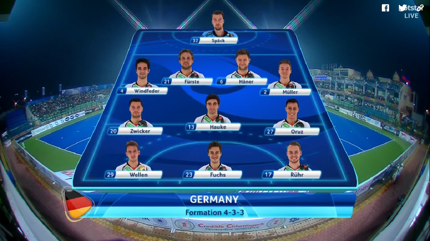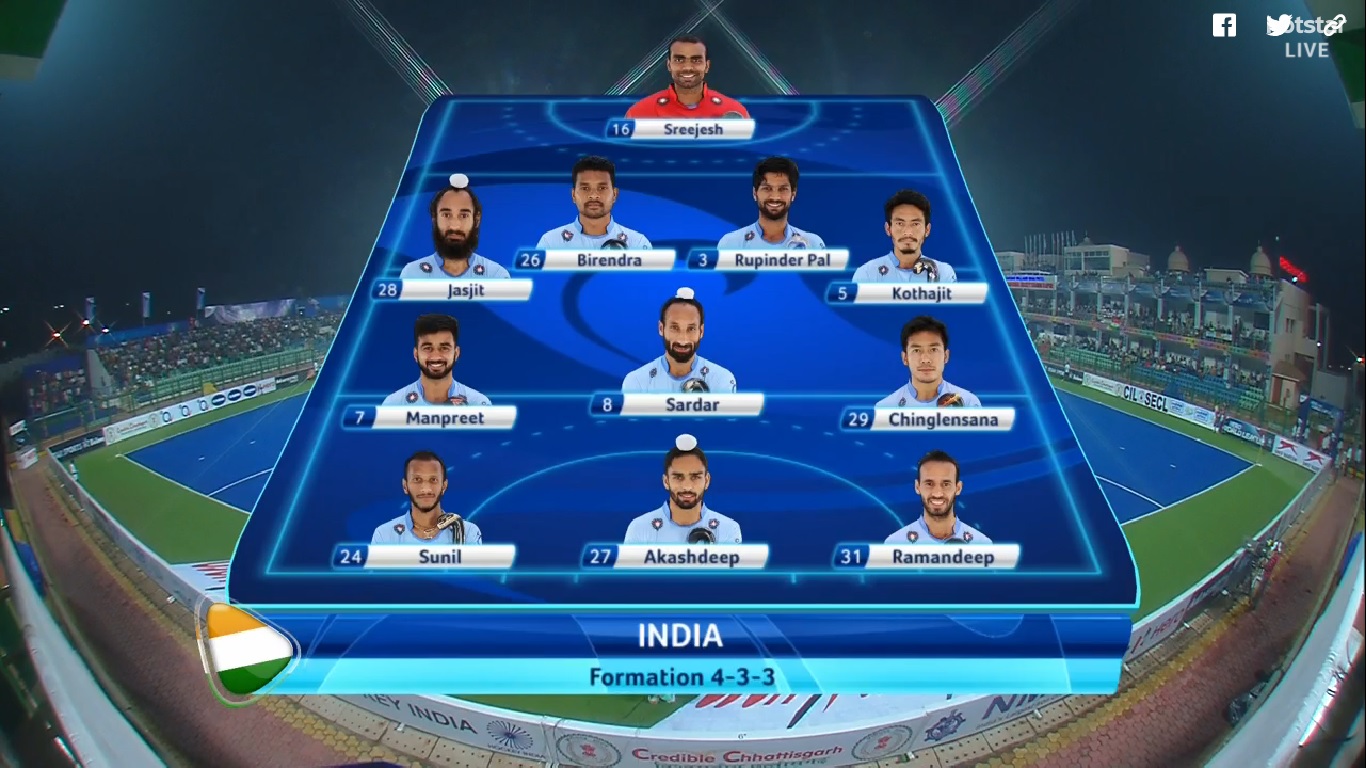 After a 3-0 thrashing by Argentina in the last match, India went into the match against Olympic champions Germany with the hope of making a comeback into the tournament. Germany led the head-to-head between the teams with seven wins in last ten matches, while India have won only thrice. With the hosts facing a stern test against the German side, Indian coach Roelant Oltmans brought more solidity to his side by changing the formation from 5-3-2 to 4-3-3. SV Sunil, Raghunath and Dharmvir Singh started on the bench as Manpreet, Amir and Birendra Lakhra came into the starting lineup.
