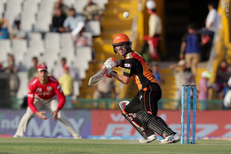 After winning three out of their last five matches under new captain Murali Vijay, Kings XI Punjab welcomed league leaders Sunrisers Hyderabad for their last home match of the season. Vijay won the toss on a hot afternoon in Mohali and decided to bat first to make use of the batting-friendly conditions. Pacer Anureet Singh came in for KC Cariappa as the home side made one change to the side that beat Mumbai Indians, while Sunrisers dropped Kane Williamson and Barinder Sran and brought in Ben Cutting and Karn Sharma in their place.