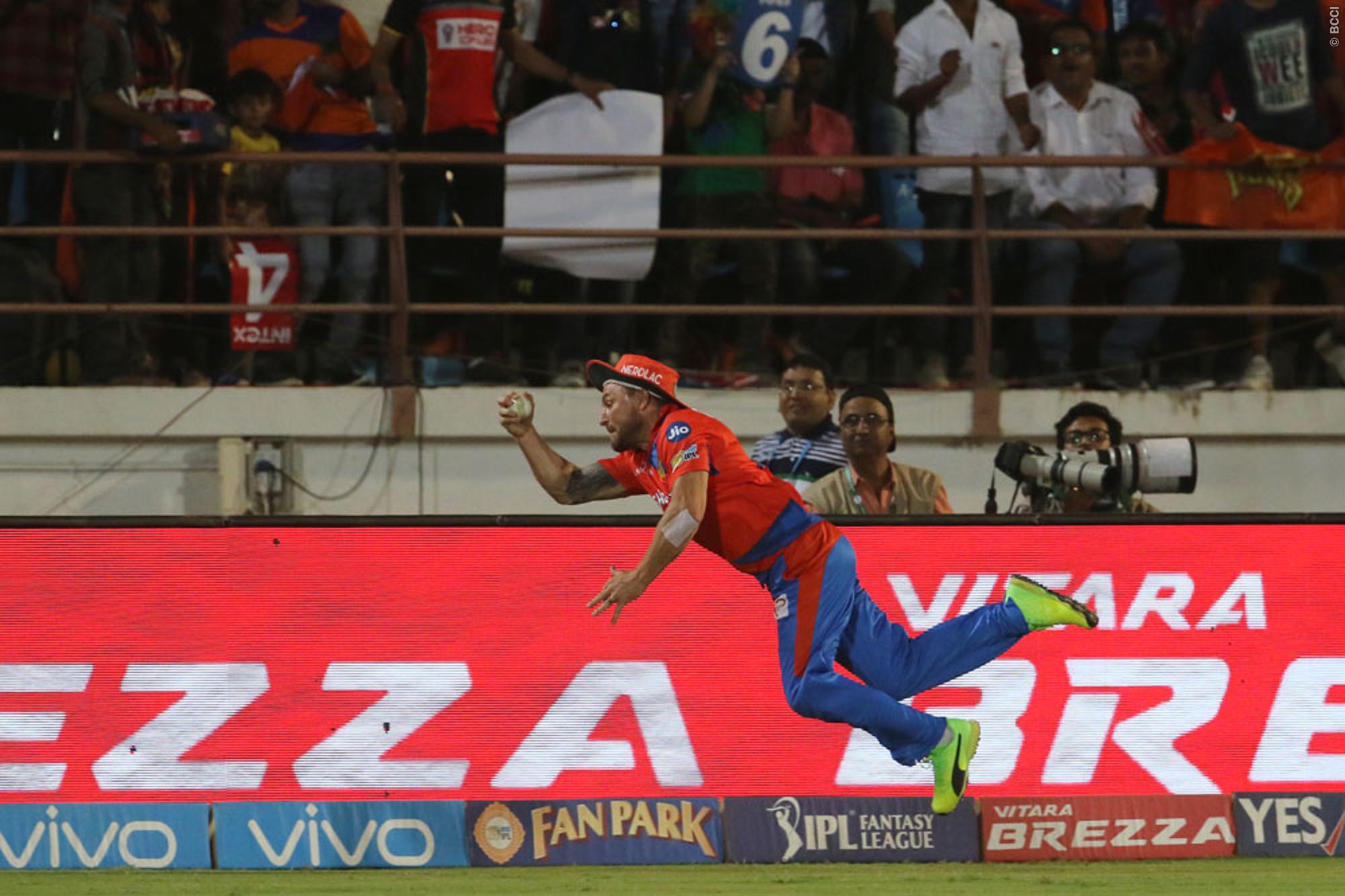 In today's match between Gujarat and RCB, Brendon McCullum almost pulled off, what could have been, the catch of the tournament. Unfortunately, his hat touched the rope and the catch didn't stand. Kohli and Gayle displayed exemplary sportsmanship by congratulating McCullum for his superb effort.
