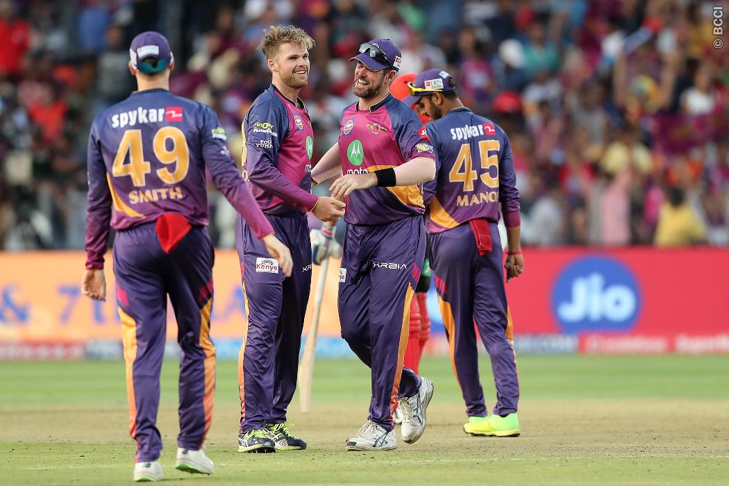 Rising Pune Supergiants: Ajinkya Rahane, Rahul Tripathi, Steven Smith (C), Lockie Ferguson, MS Dhoni (wk), Manoj Tiwary, Daniel Christian, Imran Tahir, Ankit Sharma, Shardul Thakur, Rahul Chahar.