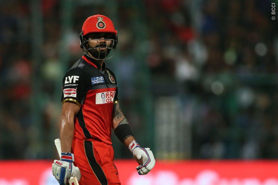 Kohli displayed some poor cricketing skills when he tried to charge down the pitch to an in-swinging Sandeep Sharma delivery and missed it completely which sent his leg-stump tumbling. Against the Kolkata Knight Riders, the RCB skipper was dismissed without opening his account.