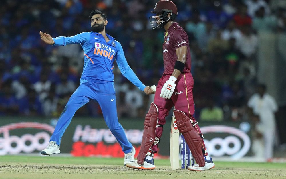 On the last ball of the 33rd over, Jadeja bowled a length ball to Shai Hope to which the batsman simply played through cover point for a single. Jadeja took his cap from umpire Shaun George and went back to field in deep when the third umpire called that the last delivery was a no-ball. Rohit Sharma, who was the acting captain on the field in Virat Kohli’s absence, had already changed his field for the next over but Jadeja had to return.