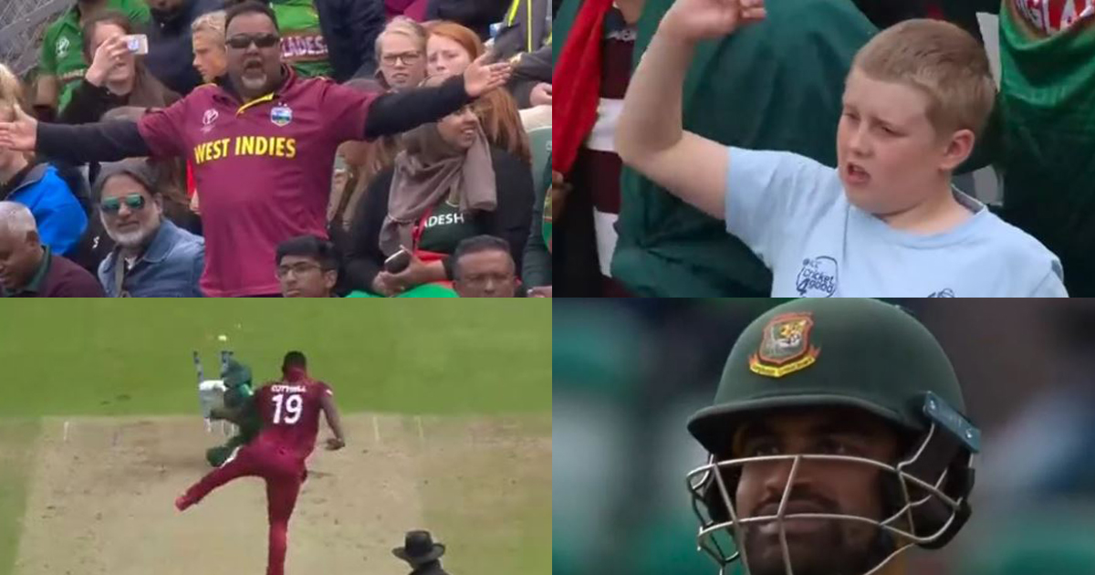 When Shakib Al Hasan edged a delivery and went to Shannon Gabriel who was in fine leg, but surprisingly Shia Hope ran all the way to fine leg to take the catch. Due to this, both Gabriel and Hope failed to take the catch! More than the players a West Indies fan in the stands was absolutely fuming!