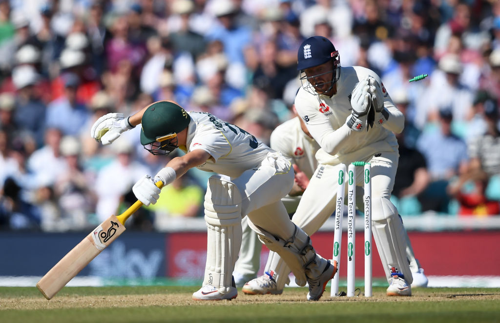 The said delivery, by Jack Leach, offered a significant turn and beat the edge of the batsman, and in no time the bails came off. As surreal as it seemed, but it was Bairstow behind r exploit as he stumped Labuschagne out. On-field umpire Kumar Dharmasena went upstairs to have a look at the stumping and the replay showed that Labuschagne's back toe was dragging out of the crease as he pushed his body weight forward, and that was when Bairstow took no time to remove the bails. The third umpire took as little time to declare that as out! As a result, Australia were reduced to 56/3.