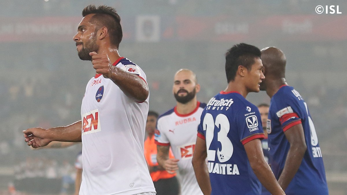Just when the game looked over for Delhi, substitute Robin Singh performed the rescue act as he scored the equalizer with virtually the last kick of the game. Florent Malouda's freekick was headed on by Mumbai defender Lalchhuan Mawia, instead of clearing it, and the ball reached Robin Singh at the far post. The Indian international showed immaculate technique to volley it past Subrata Paul and win a point for the home side.