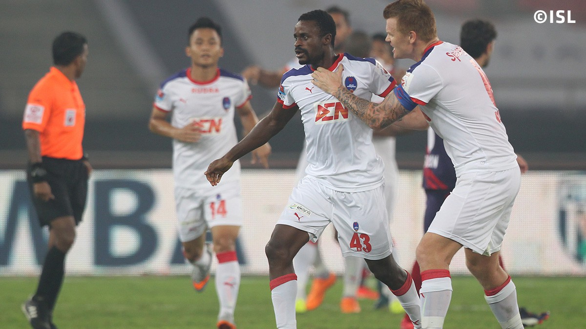The goal arrived after a delightful build-up play between Florent Malouda and Robin Singh in the midfield, before the Frenchman found Gadze at the edge of the box. The Delhi striker turned his marker, Augustin Fernandes, and then rifled his shot into the top corner.