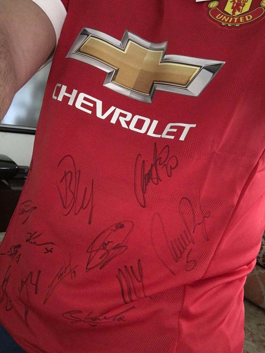 "OMG @ManUtd just sent me this!!!," he wrote. "I'm in shock! Thank you boys!," he added, expressing his gratitude to the squad members who signed the shirt.