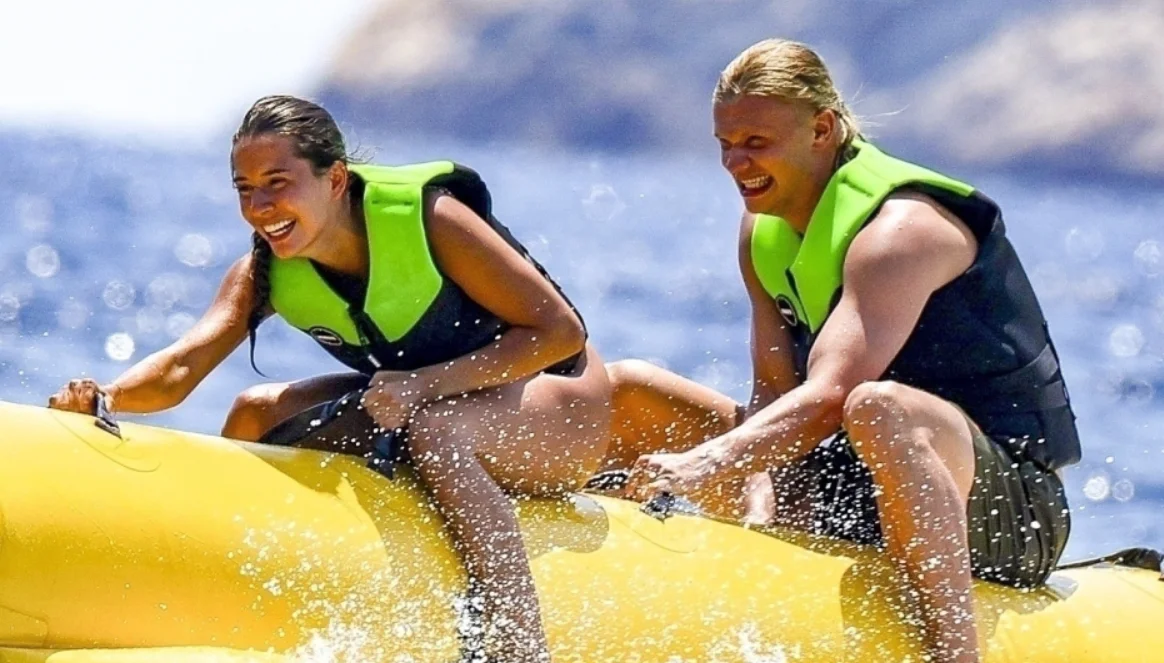 Following Manchester City's early exit from the Club World Cup, Erling Haaland was seen vacationing in Ibiza with his girlfriend Isabel Haugseng Johansen. The couple enjoyed water activities like banana boat rides, jet skiing, and surfing.